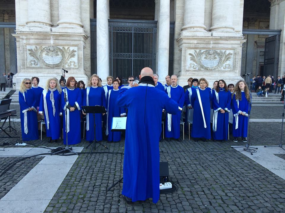 Appuntamento per il 7 Hills Gospel Choir, quello del 17 ottobre, per la Giornata Mondiale del Rifiuto della Miseria, giorno in cui il movimento ATD Quarto Mondo a Roma, fa memoria del fondatore, padre Joseph Wresinski, e dei valori della sua opera contro la miseria. Alla commemorazione, che ha luogo sul sagrato della Basilica di San Giovanni in Laterano, hanno partecipato sia i testimoni veri di situazioni di povertà e di alto disagio sociale con i loro racconti di vita alle prese con la miseria, che i sostenitori del movimento ATD che lottano ogni giorno cercando di rendere sensibili le istituzioni governative alla risoluzione reale del problema, in una società che invece sta creando sempre più poveri di serie A e di serie B. Per dare maggiore forza al messaggio, si è aggiunta poi la voce di Sua Eccellenza Reverendissima Enrico dal Covolo, Magnifico Rettore della Pontificia Università Lateranense, che celebrando la S. Messa nella Basilica, ha dato voce al Papa e ai poveri di tutto il mondo in un insieme di pensieri dedicati a questa giornata, volti ad incoraggiare all'azione e non alla passività. In tutto questo il coro 7 Hills con il suo intervento canoro, tenutosi sia all'esterno, sul sagrato della Basilica, che all'interno durante la funzione religiosa, ha sostenuto con il canto Gospel le forti parole di questa Giornata così importante. Il canto che apre e chiude la celebrazione é l'inno emblema della liberazione dalla miseria, la splendida "Freedom", tanto cara e sentita dai coristi da averne inciso un breve passo nel loro primo cd "First". Il coro, che aveva partecipato già nel 2013 (si svolge a Roma ogni due anni), a questo evento, ha rinnovato così la collaborazione con gli organizzatori della manifestazione, facendo tesoro degli insegnamenti di questa giornata, e perseverando, attraverso il proprio canto, nell'aiuto continuo dei più bisognosi, attraverso decine di concerti ogni anno.