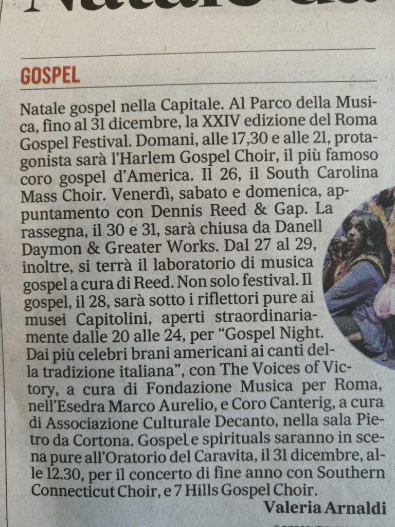 Concerto di fine anno Southern Connecticut Choir & 7 Hills Gospel Choir – Oratorio del Caravita – Roma, 31/12/2019